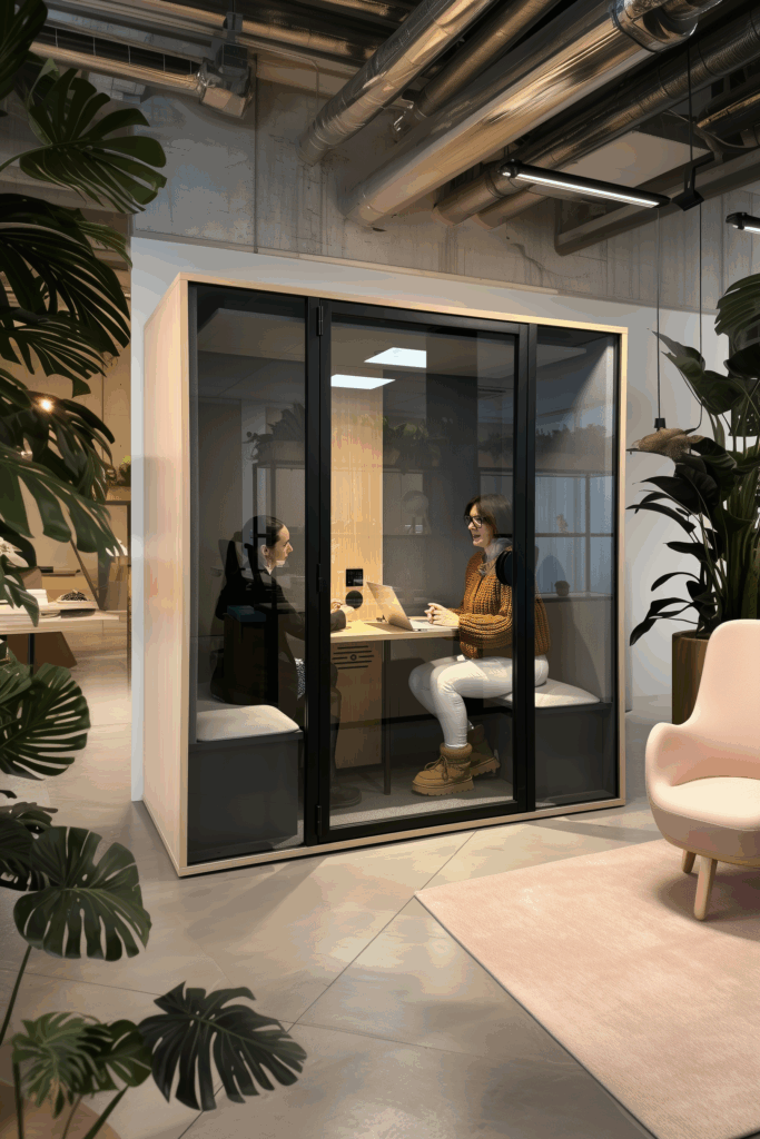 C’est précisément pour ça que les cabines acoustiques se sont imposées dans les espaces de travail : elles créent une bulle où l’on peut s’isoler, parler librement, et travailler sans déranger (ni être dérangé).